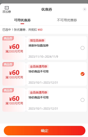 第三步:点击“确定”,完成优惠券确认使用的操作。