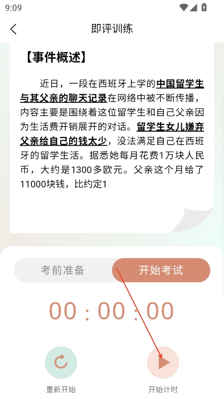 5、进入即评题,点击开始,就可以在线计时答题了