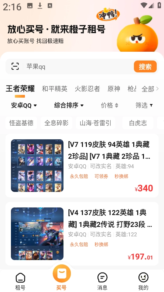 橙子租号怎么购买游戏账号