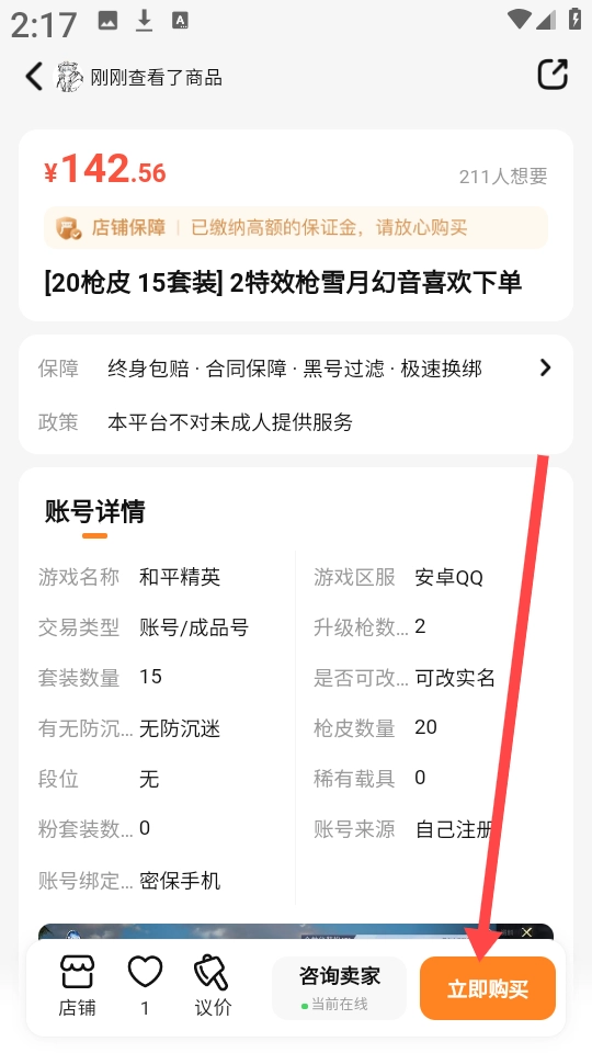 4、根据玩家需求,选择一款需要的游戏账号,直接点击“立即购买”即可。