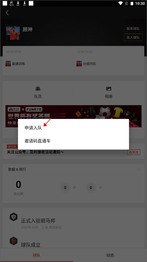 3、此时,你能在页面上看到球队成立时间以及球队人员的相关信息,点击页面右上方的“加入球队”按钮。