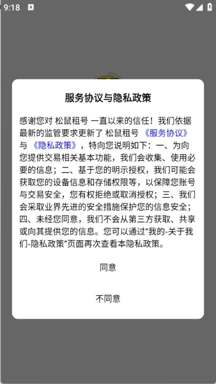 1、首先在游戏网松鼠租号,查看并同意隐私政策与用户协议。