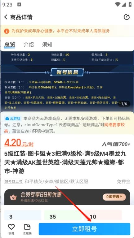 4、玩家打开所需的游戏账号界面后,点击“立即租号”就可以了。