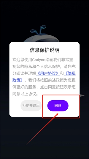 2、打开进入软件,点击同意隐私协议
