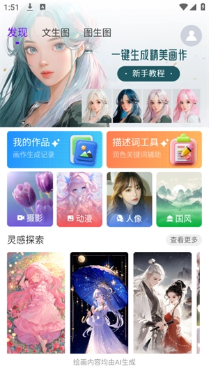 3、于发现页面内,能够依据自身需求,挑选文生图或者图生图的创作形式。