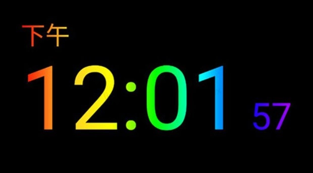 4、返回手机桌面后就能发现,整体时间的颜色已变为彩虹色。