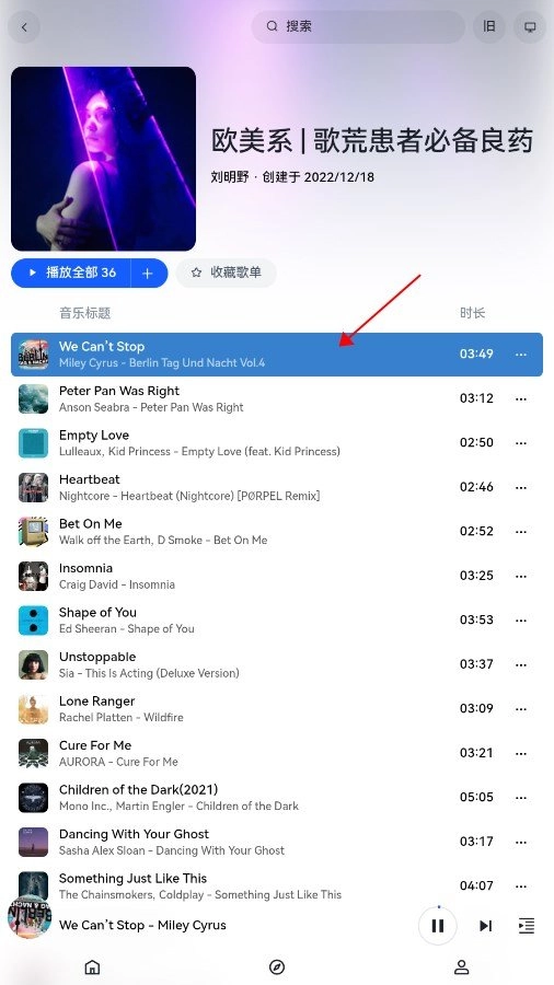 3、可以建立多个歌曲列表,并在其中加入自己喜爱的音乐。