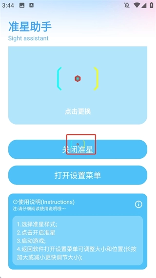3、点击“开启准星”