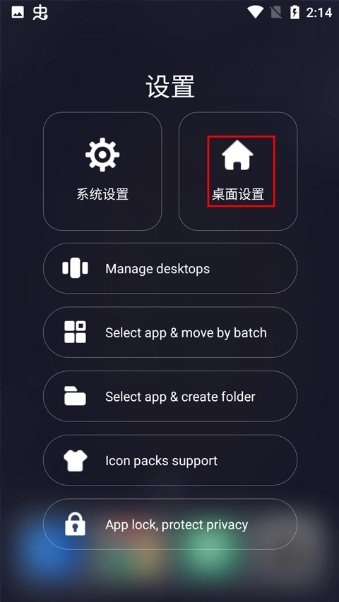 3、在桌面设置中,上方有一个设为默认桌面的按钮,点开它就设置成功了。