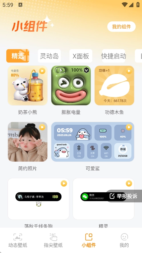 3、在小组件里面汇集的组件很多,可以自由的选择所需要的主题。