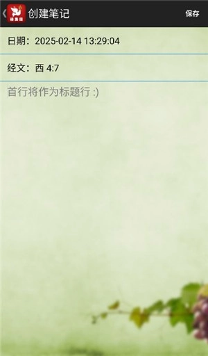 4、创建你的个人笔记,日期与经文位置都会自动记录,写完保存即可。