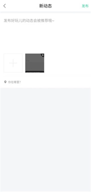 3、在新动态页面中可以上传视频或者照片;