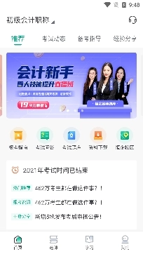 3. 可视化离线题库涵盖会计从业资格证、初级与中级职称以及注册会计师的考点与章节练习。