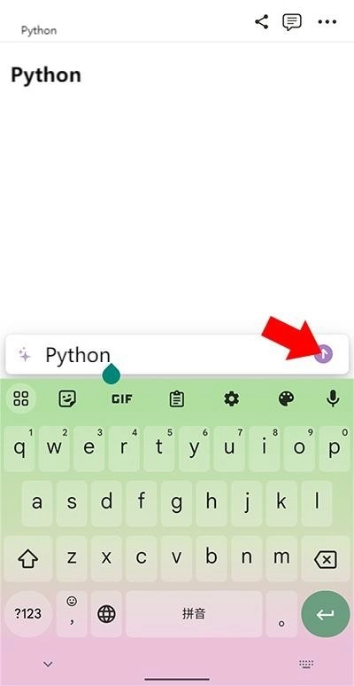 2、当用户进行在文本编辑时,工具栏会显示在输入法上方。点击工具栏中的第一个图标开始使用AI功能(如下图所示)。