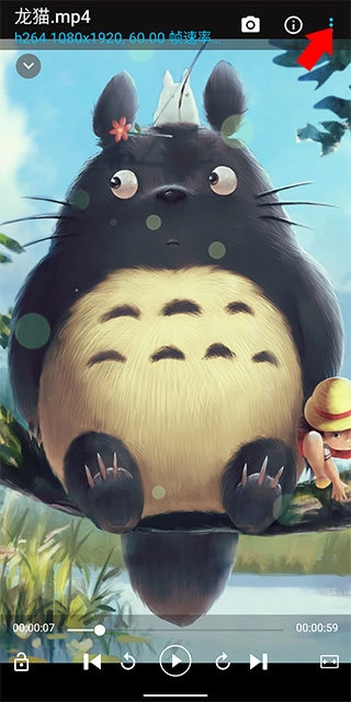 2、点击视频任意位置,唤除播放控制界面,之后点击控制界面的右上角