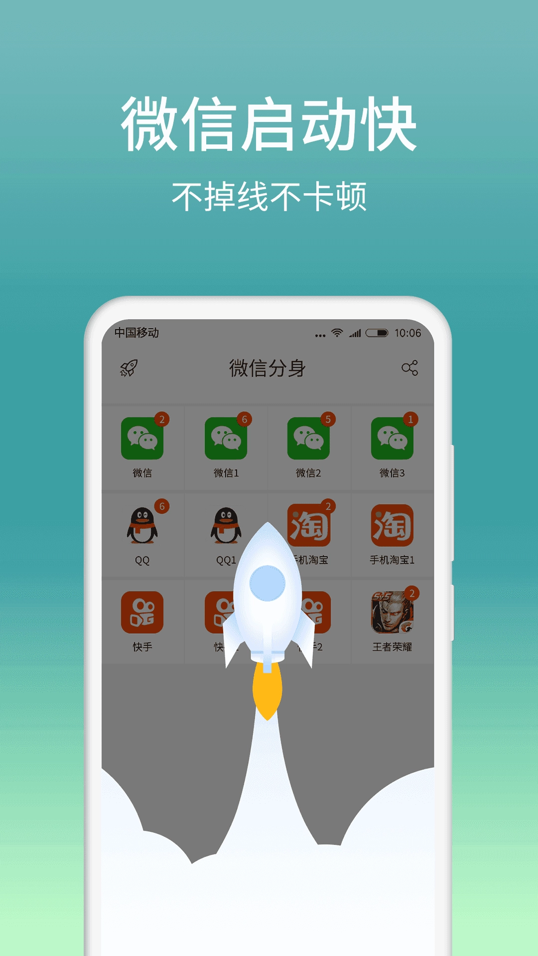 微信分身,免费支持应用分身、游戏双开、多开、分身,轻松实现微信、支付宝、派派、拼多多等几乎所有应用的多账户同时在线,分身独立运行互不影响,解决多账户用户来回切换登陆账号的烦扰!
