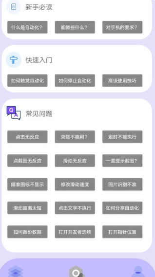 1、打开光速连点器,在首页可以看到学习新手教程,有问题可以在常见问题里寻找