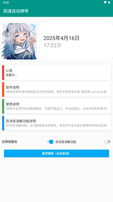 5、进入游戏弹琴界面,点击悬浮窗启动键即可自动演奏。