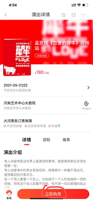 1、先找到自己要购票的项目,接着点击“立即购票”按钮