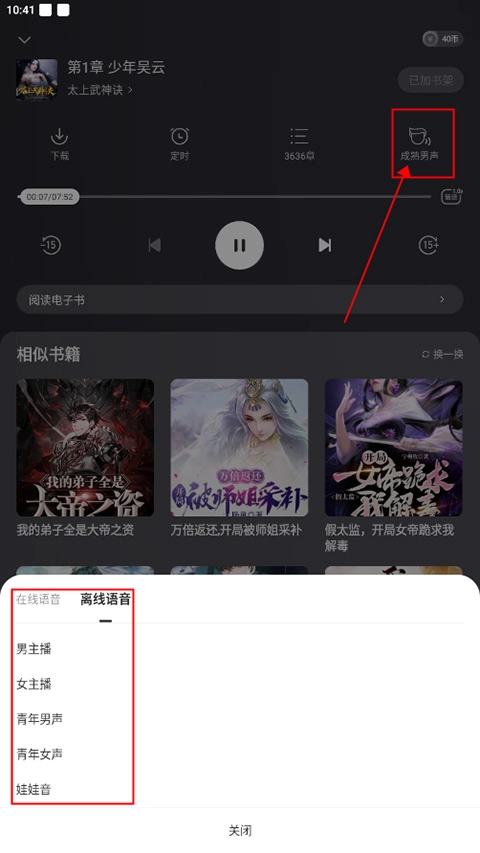 8、语音朗读,细腻的人声朗读,提供多种音色供你选择,解放双眼,随时随地听小说!