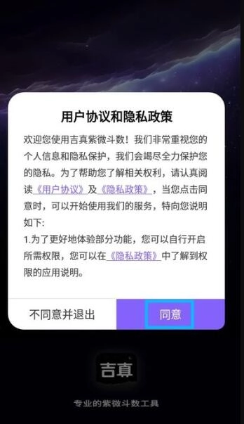 1、启动软件后,仔细阅读弹出的用户协议与隐私政策,随后点击【同意】按钮;