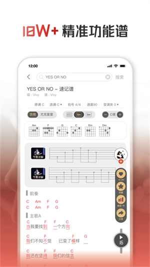 曲谱自动播放、和弦简化、切换为和弦级数谱,升降调功能(用户可根据自身技术水平调整曲谱难度)