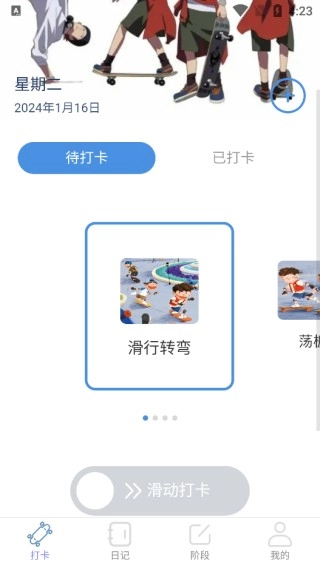 在应用里,你能挑选合适的滑行技巧,或是添加自己想练习的技巧,接着依据自身的进步状况完成打卡。这种记录方式既能激励你坚持练习,也能让你清晰看到自己的成长历程。