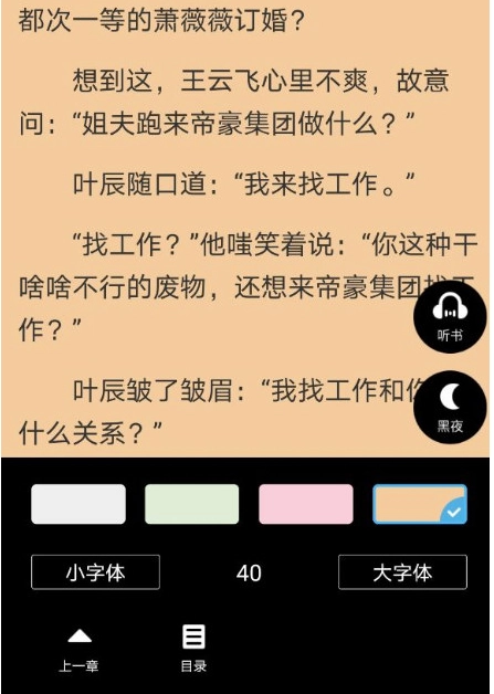 进入后,点击页面会弹出上一章和下一章的选项,点击相应选项就能完成翻页操作。
