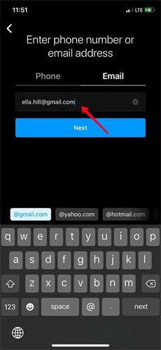 打开Instagram应用,然后挑选您打算用来创建账号的联系信息。
