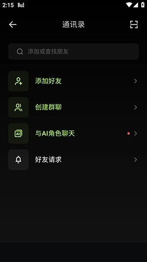 12、点击通讯录,能够进行添加好友、创建群聊以及和AI角色聊天的操作。