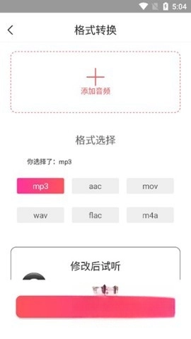 3、以格式转换为例,它支持的格式包括mp3、aac、mov等多种选择,满足你不同的需求。