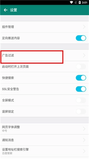 3、然后再点击广告过滤。