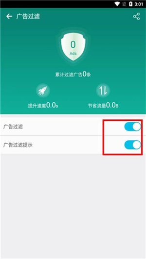 4、最后,打开广告过滤按钮即可。