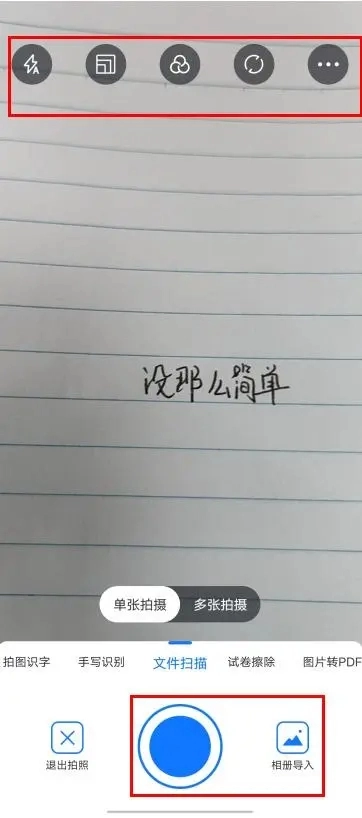 3.对需要识别的文件页面进行拍摄,或是从相册中导入待扫描的图片