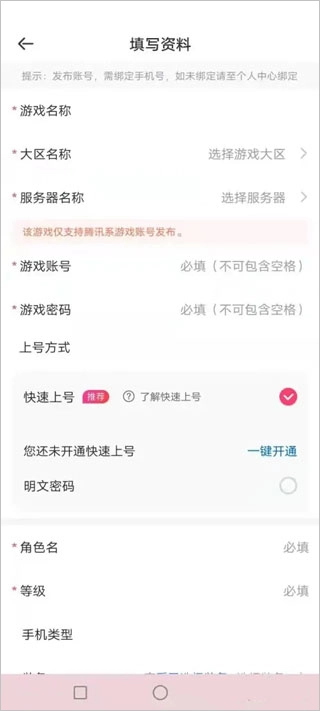 5、填写好自己的游戏相关资料,接着点击下一步,这样你的账号就能发布出租了。