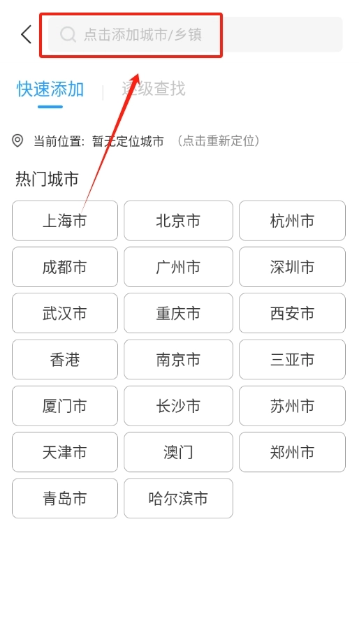 3、在搜索框里输入城市名字,输完点确定,这个城市的天气就加到你的列表里了。