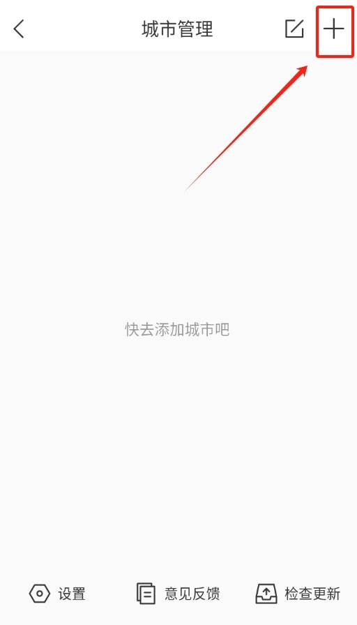 2、在弹出的菜单里点击右上角加号这个选项,准备输入你想关注的地方。