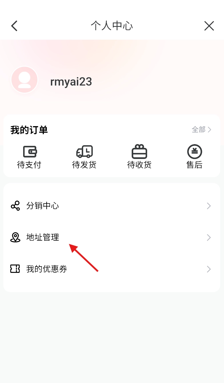 4、进入个人中心后,浏览页面上的功能选项,找到“地址管理”板块并点击进入其设置页面。