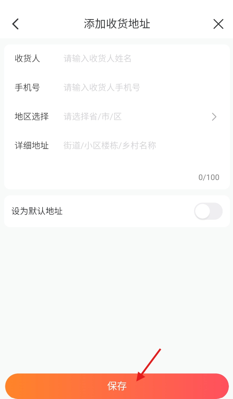 6、在编辑框中完整填写收货地址的各项信息,仔细核对确认无误后,点击保存按钮,即可完成收货地址的添加操作。