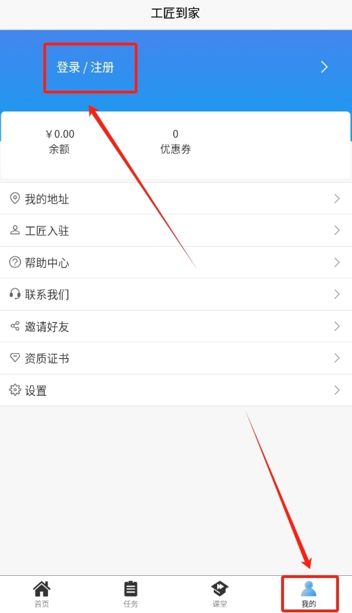 工匠到家怎么登录或者注册