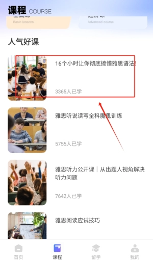 2、在主界面中,选择适合自己的课程,以便开始更高效的学习进程,获取理想的学习效果。