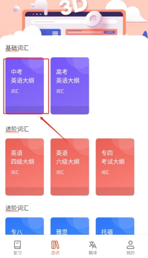 2、挑选词汇书选项展开学习,系统将为您供给多样的单词与短语,助力您提高英语能力。