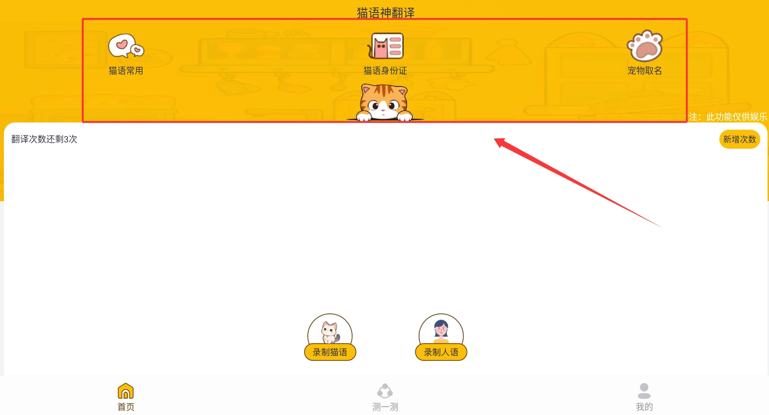2、进入猫猫智商功能页面,通过拍照就能查看测算出的智商数值,点击进入后按照提示操作即可。