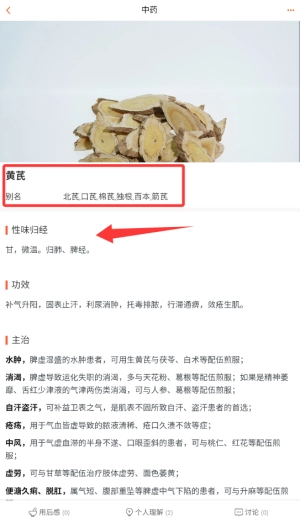 3、每一味药材都配备了高清图片,还附有性味归经、临床应用等方面的专业解析内容。
