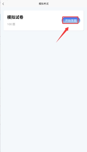 1、启动应用后,在首页选择"模拟测试"功能进入考试准备页面。