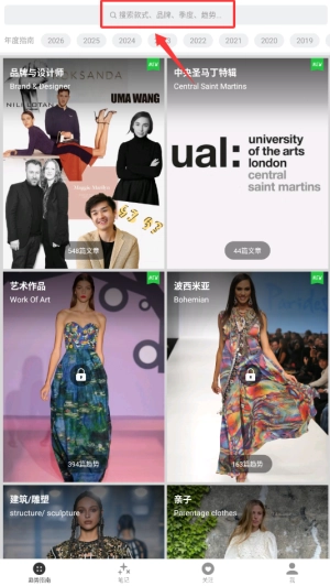 2、借助风格分类或者关键词搜索的方式,能够快速定位到自己感兴趣的搭配技巧类文章。