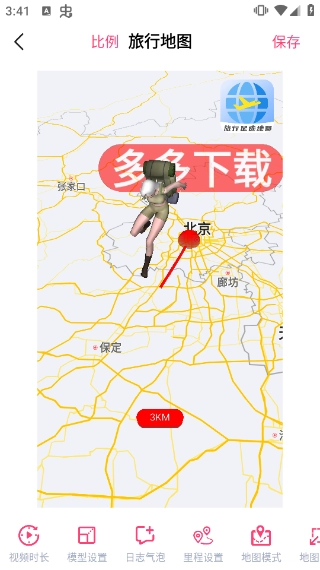 3、稍作等待,就能生成按设置制作的旅行地图,我们可以对它进行后续的修改和调整,确认没有问题后点击保存就可以了。