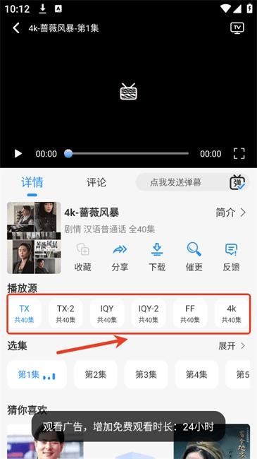 1.若遇到无法正常播放的情况,可在播放详情页的【播放源】处切换路线,系统提供多条线路供您选择。