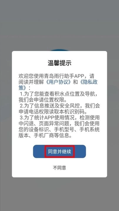 ·阅读弹出的温馨提示,点击【同意并继续】;