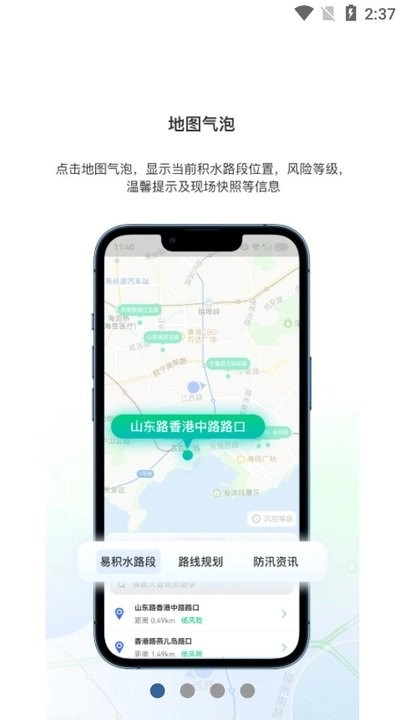 为青岛市民在汛期提供易积水路段信息查询、路线规划、防汛资讯三大功能,地图展示易积水路段实时信息,方便市民在雨天合理规划出行方案。